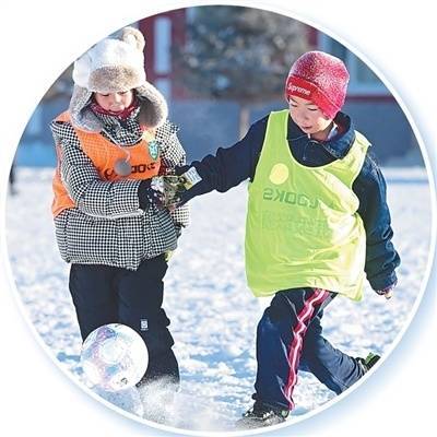 “雪假”时间,内蒙古呼伦贝尔额尔古纳市学生参加雪地足球行动。 王 正摄