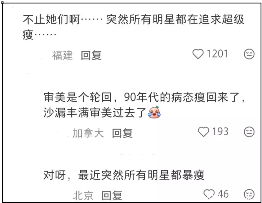 一启动宇宙还默许明星是为了使命变瘦的,成果跟着越来越多明星瘦偏持,网友也有了其他念念法。