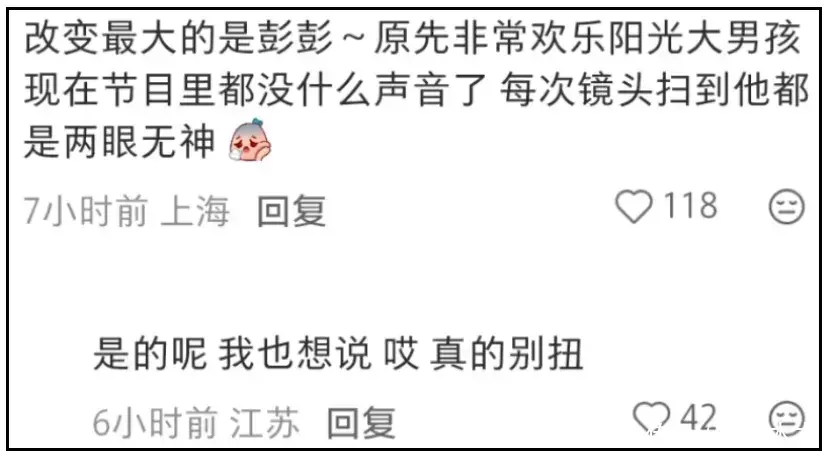 新一季《向往的活命》中,黄磊和何炅数次说起彭昱畅太瘦了,惦记他低血糖,可见彭昱畅的瘦果决到了影响躯壳健康的地步,隔着屏幕的不雅众雷同留心到彭昱畅辩认劲。