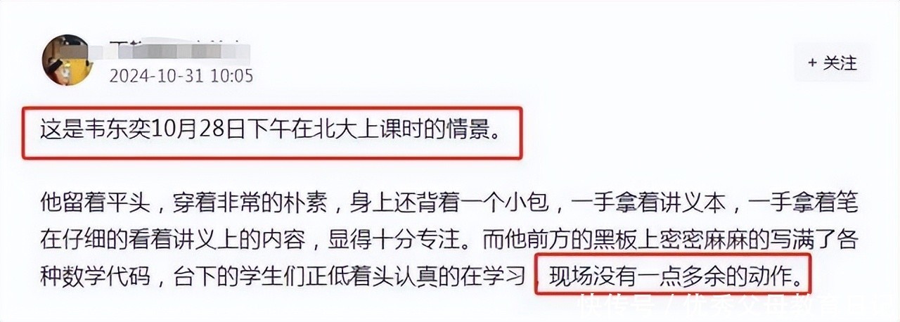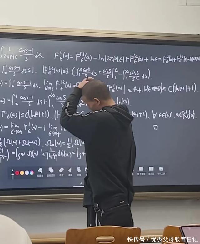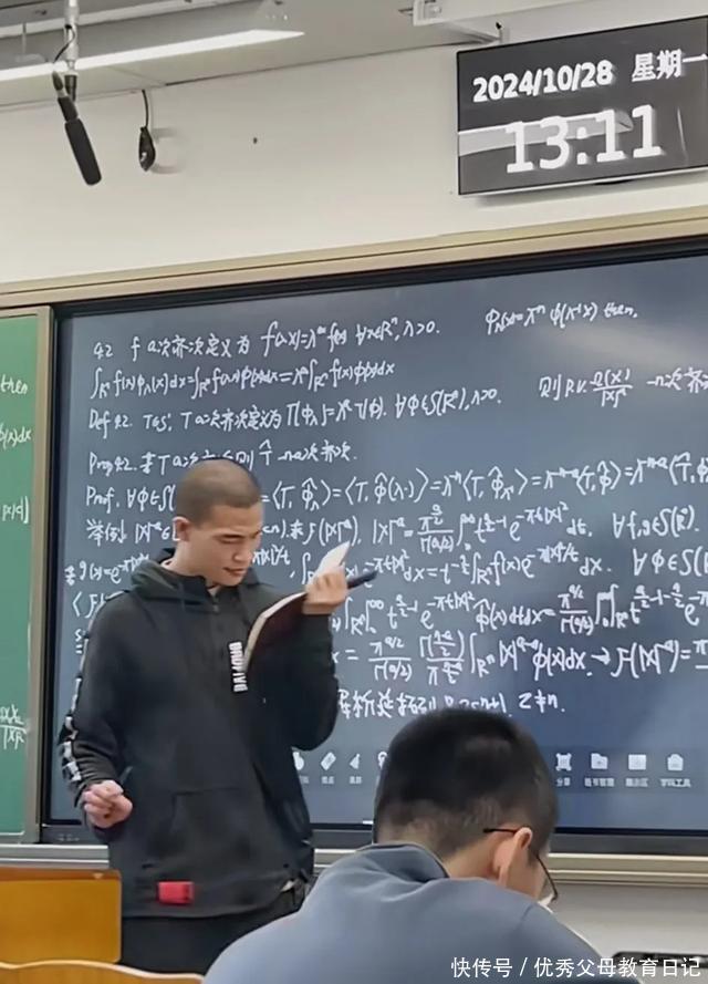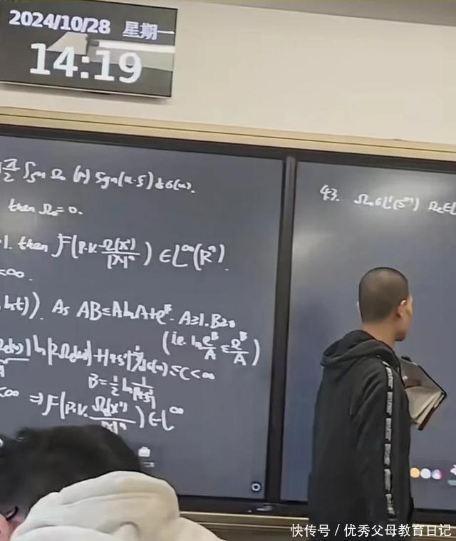 韦东奕每周王人要在数院给高材生们上课。有的手艺也会有一些旁听者,有一位网友看到了一天地午,韦东奕刚好在多媒体教室内部给学生授课,只见后头的电子屏幕上写满了板书,王人是他手写的,底下的同学听的亦然十分的矜重。