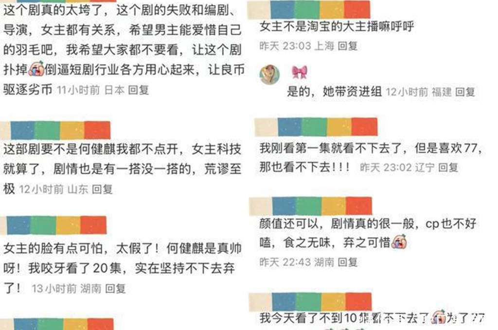这部剧被不雅众吐槽得那叫一个惨,就连何健麒的粉丝都有点看不下去。好多粉丝都说:“咱们冲着你来的,效果你却带咱们看了这样一部烂剧,果然太让东谈主失望了。”这就好比你一直信任的一又友短暂回击了你,那种嗅觉,果然又气又恼。