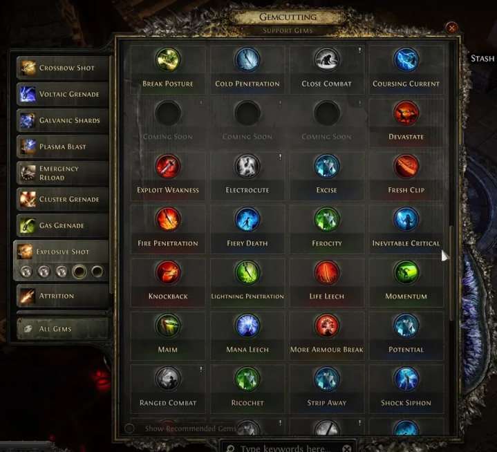 为了让新玩家更容易赢得这极少,GGG 现时提供了推选提拔相持列表。虽然,要是您更有训导并但愿进一步尝试,您不错取消选中“袒露推选相持”功能,以稽查与您的妙技妥洽使用的提拔相持的完好意思列表。
